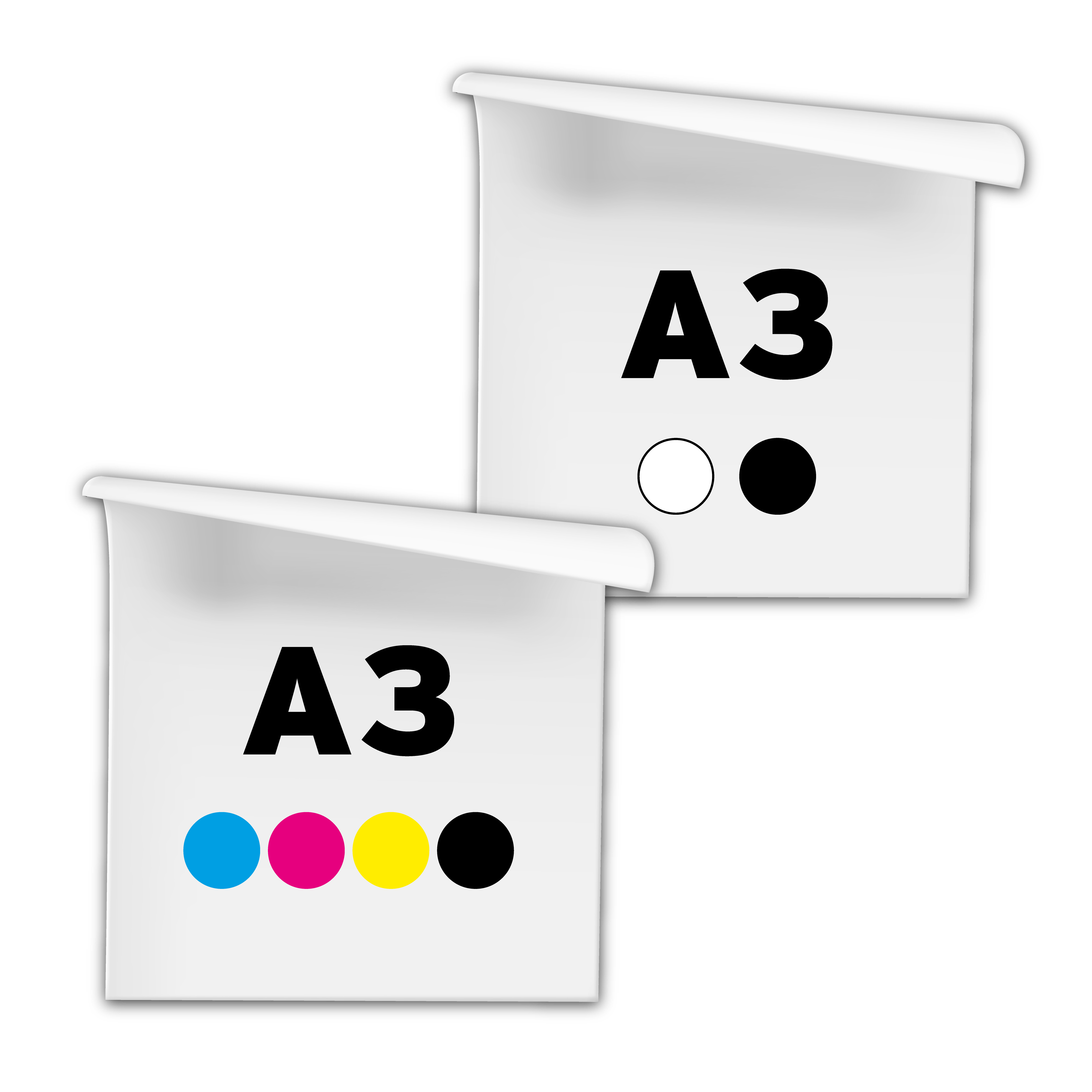 La stampa A3 viene effettuata in alta definizione su carta 80 gr. Su richiesta la stampa può essere effettuata su carta di grammatura e colori diversi (max 300 gr. colore ad es. avorio).